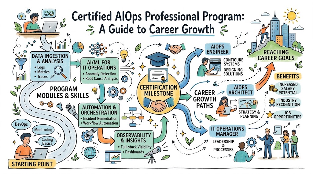 In the modern IT world, managing complex systems requires more than just manual effort. The Certified AIOps Professional program is designed to help engineers use artificial intelligence and machine learning to improve IT operations. This guide is built for software engineers, SREs, and IT managers who want to understand how to move from traditional monitoring to proactive, AI-driven management. AIOps School provides this roadmap to help you stay ahead in a competitive market.